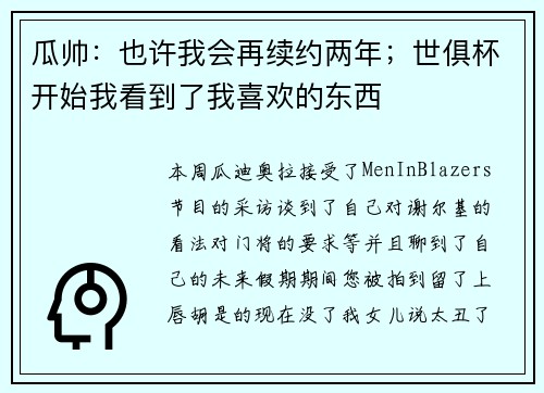 本篇文章将深入探讨月牙湾足球明星的背后故事与成就,揭示他们在职业生涯中的奋斗历程、个人成长、社会影响以及未来展望。首先,我们将回顾这些球员从青涩少年到如今闪耀赛场的成长轨迹,分析他们在追求梦想过程中的艰辛与坚持。接着,本文将聚焦于他们所取得的非凡成就,包括各项比赛中的优异表现和个人荣誉。此外,我们还将探讨这些明星对社会的积极影响,他们如何通过自身的力量回馈社区并激励年轻一代。最后,本文将展望未来,...