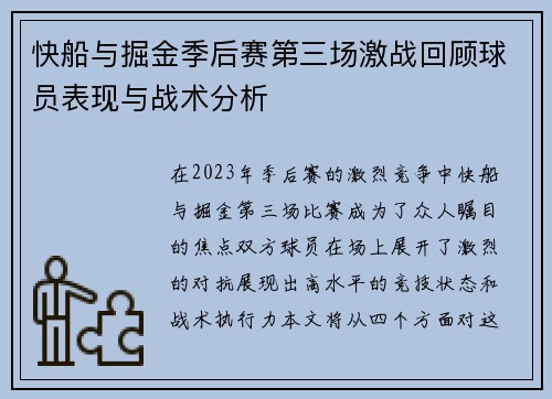 在2023年5月10日的比赛中,休斯顿火箭队与圣安东尼奥马刺队展开了一场激烈的对决。这场比赛不仅展示了两支球队之间的竞争关系,也让球迷们感受到了篮球运动的魅力。整场比赛双方比分交替领先,精彩瞬间层出不穷,让观众目不暇接。从开局阶段的紧张对抗,到最后关键时刻的绝杀投篮,每个环节都充满了悬念和激情。本篇文章将从四个方面详细回顾这场精彩对决,包括赛前准备、比赛进程、关键时刻和球员表现,全面记录这一经典战...