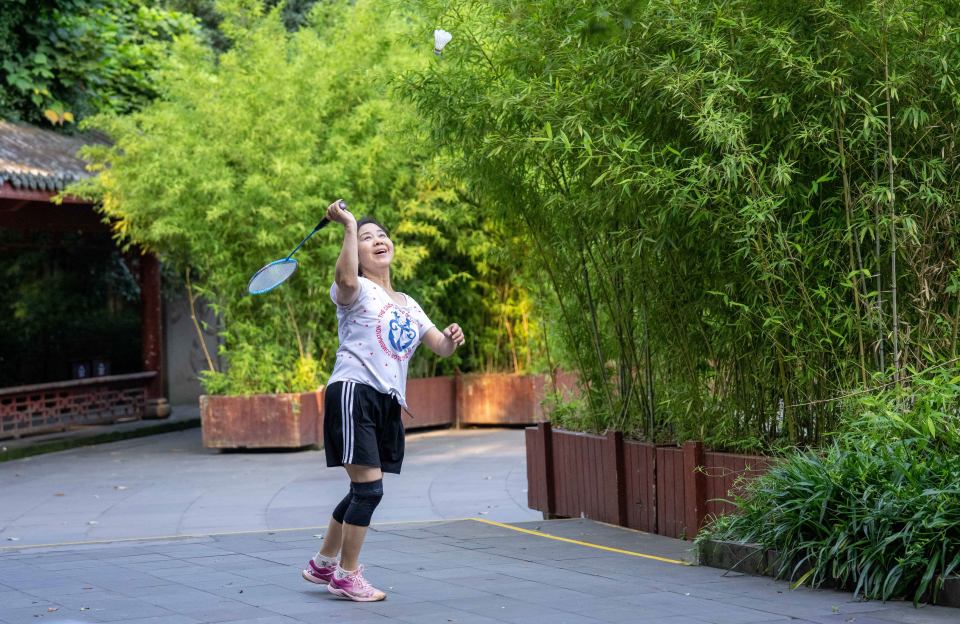 2025年7月30日,市民在成都人民公园打羽毛球。新华社记者 胥冰洁 摄